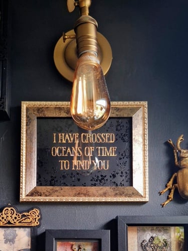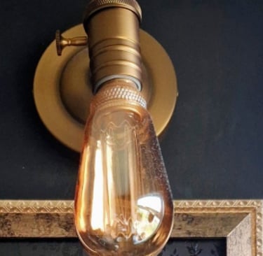 Love the Edison bulbs and gold accents to create a Victorian flair